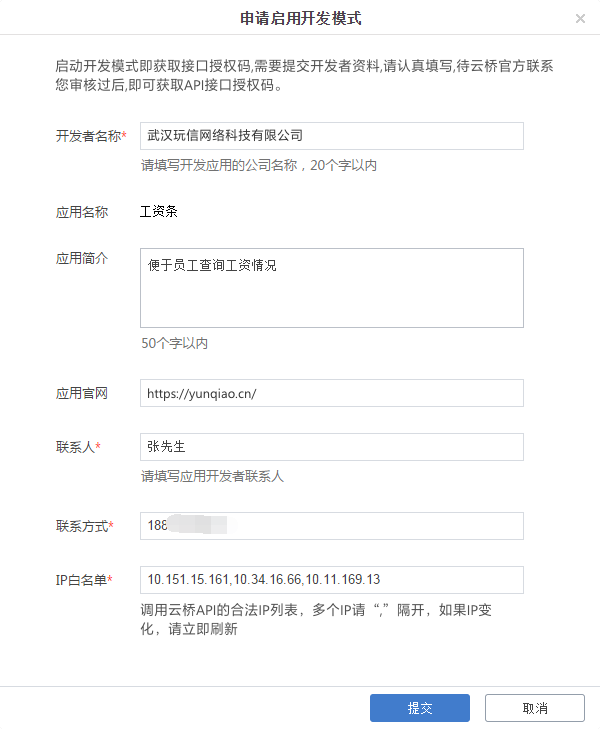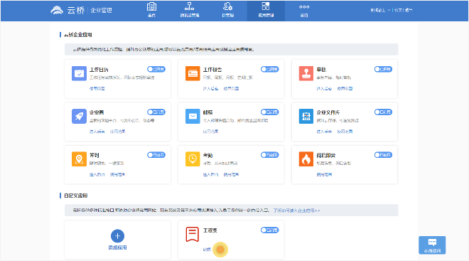 提 示:应用添加后,新应用待云桥审核通过后方能正常使用