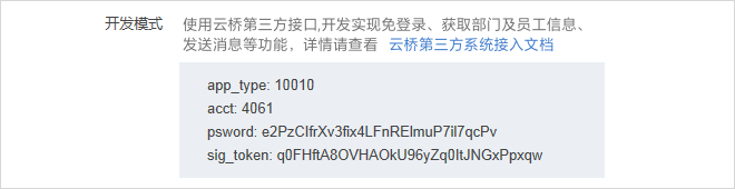企业应用调用云桥平台提供的接口,查询或操作云桥平台所管理的资源,给成员发送消息等,以下称主动调用模式。